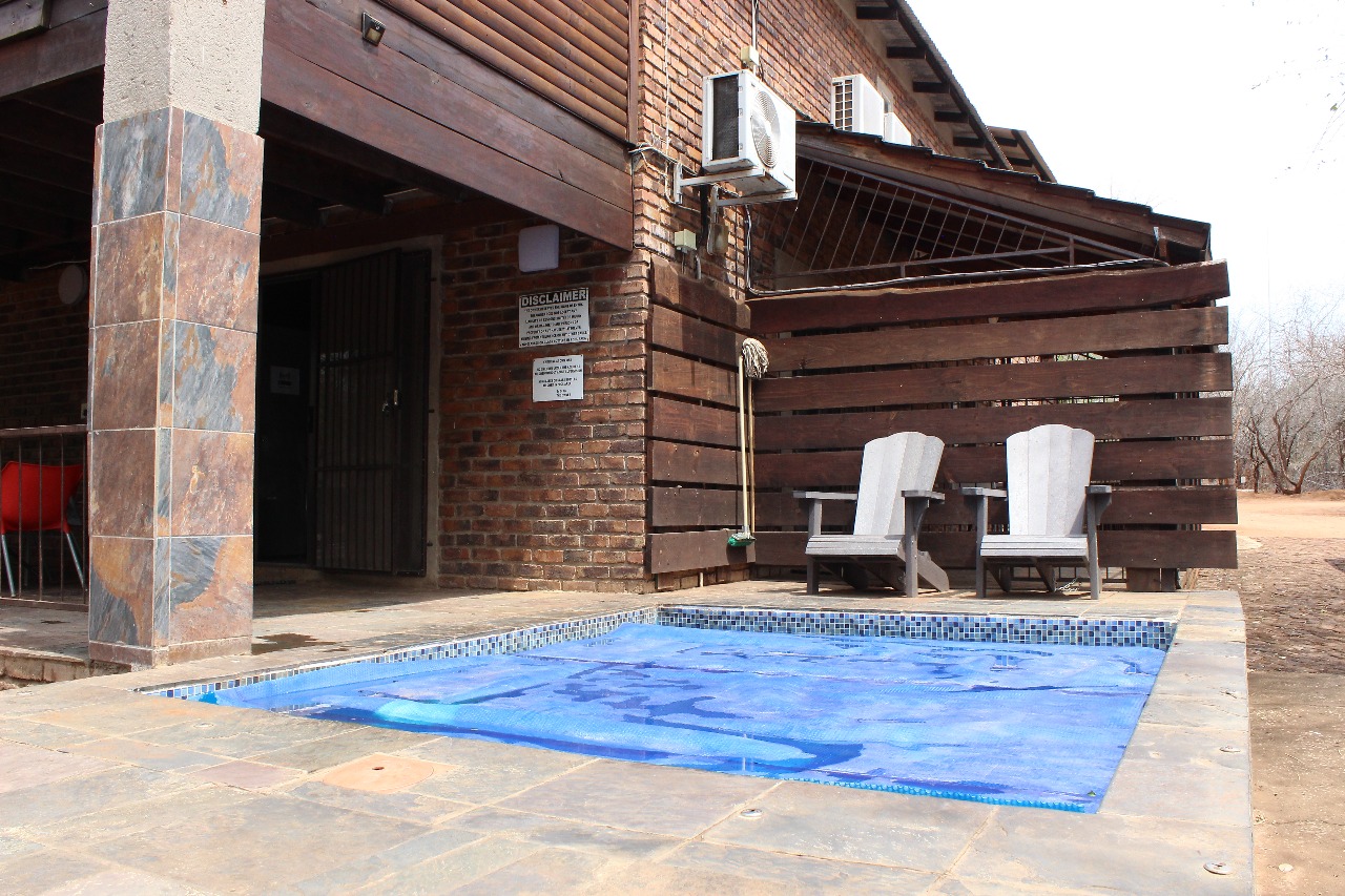 Escape to Bos-Geluk House in Marloth Park — your home in the bush! This spacious lodge sleeps up to 14 guests across 6 comfy bedrooms, making it perfect for families or groups of friends. Minimum booking: 4 guests. Additional guests: R150 pp (out of season) / R200 pp (in season). The house features 2 ground-floor en-suite bedrooms (one double, and + 2 singles in the other), ideal for elderly or guests with mobility needs. And 4 bedrooms upstairs with 2 bathrooms Enjoy solar power, a private splash pool, deck, and boma braai area. Air-conditioning is available at an additional cost, and the lounge has DSTV for your entertainment. Wildlife sightings are right outside your door — zebras, bush pigs, and playful bush babies! Kruger National Park is just 100m away with day and night safari options nearby. Highlights 6 Bedrooms / 14 Sleeper Private Pool & Deck Solar Power DStv (Commercial Package) Air-Conditioned Comfort (extra) Boma Braai & Outdoor Living
